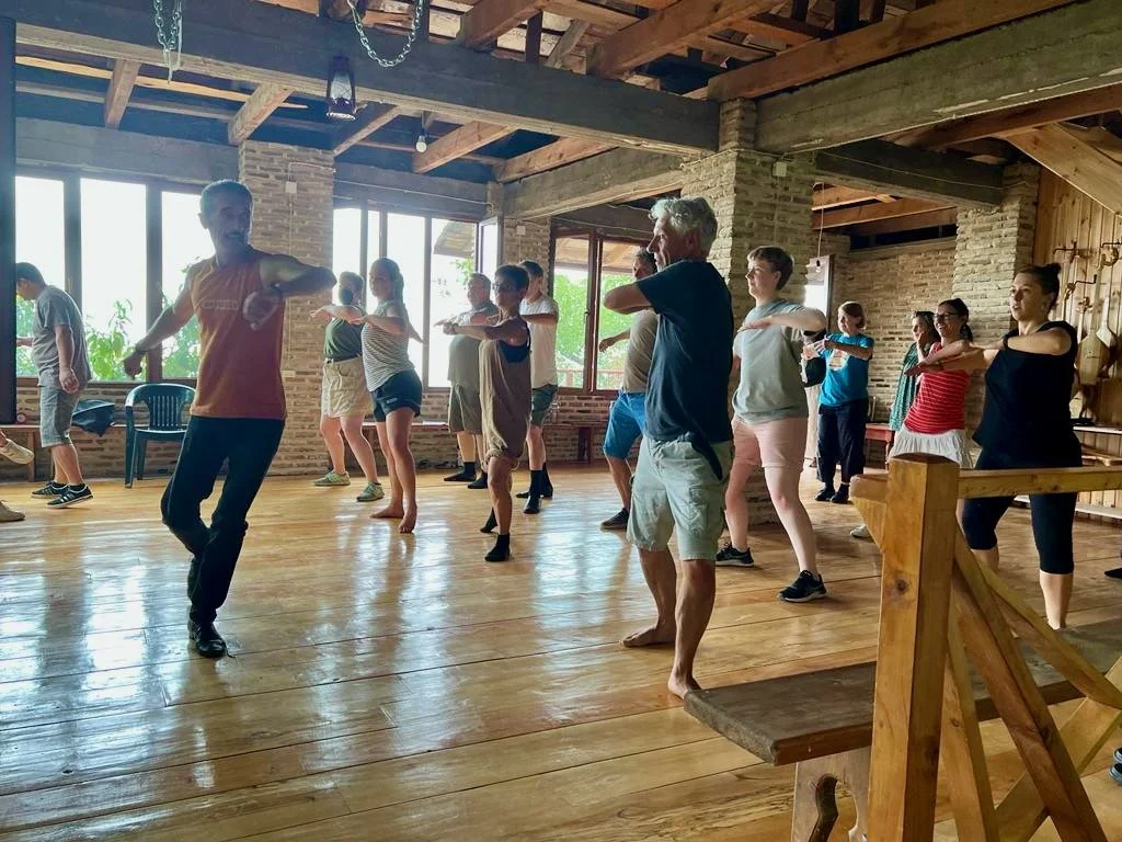 Village Harmony international camps—which are open to both adult and teenaged singers—always begin with a week of rehearsal in residence at a retreat center. Our overseas rehearsal retreats in 2025 included a lakeside inn in Ohrid, Macedonia; mini-mansions on the beach in Mahajanga, Madagascar; and a cluster of houses in the historic hill-town of Sighnaghi in Kakheti, Republic of Georgia.